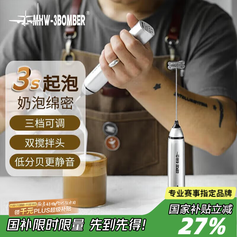 MHW-3BOMBER【结婚礼物品】轰炸机奶泡搅拌棒打发器咖啡牛奶烘焙电动打奶蛋机