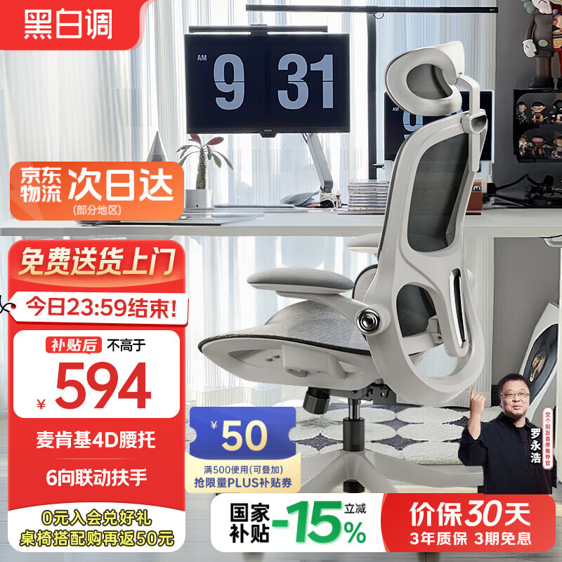 黑白调P2 Pro人体工学椅电脑椅办公椅人工力学座椅学习电竞椅子国家补贴