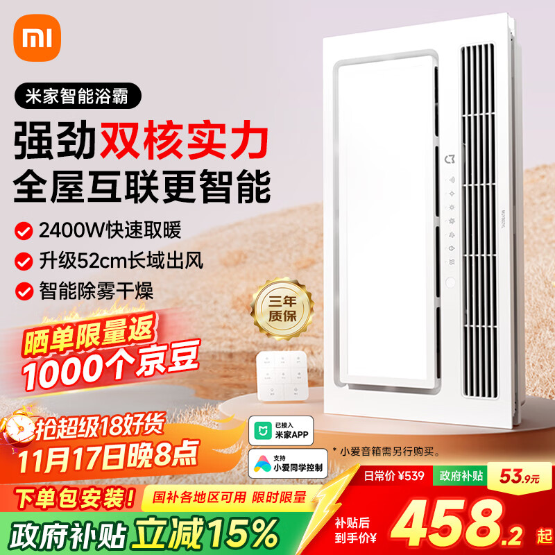 米家(MIJIA)智能浴霸【政府补贴】快速升温双核多功能风暖照明一体 智能控制