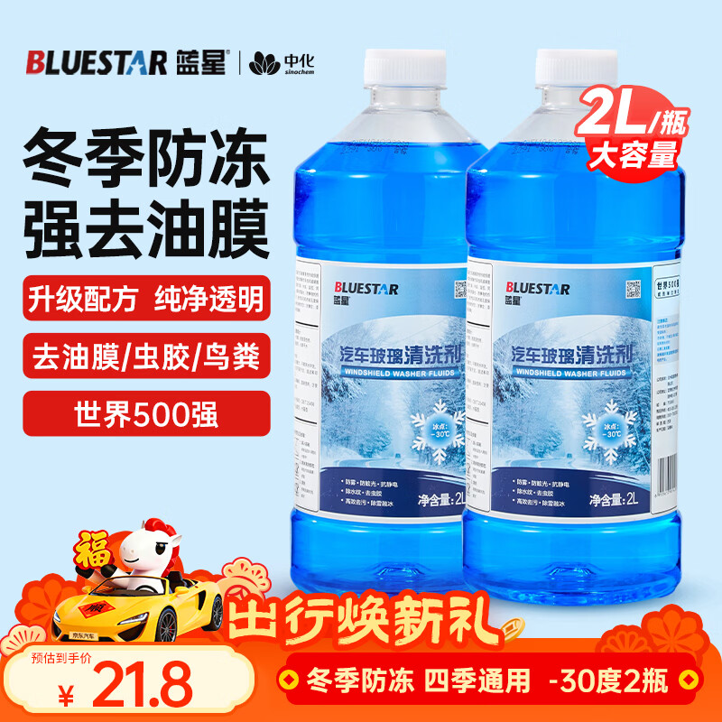 蓝星汽车玻璃水-30度 2L*2瓶 冬季防冻强力去油膜去污雨刮水四季通用