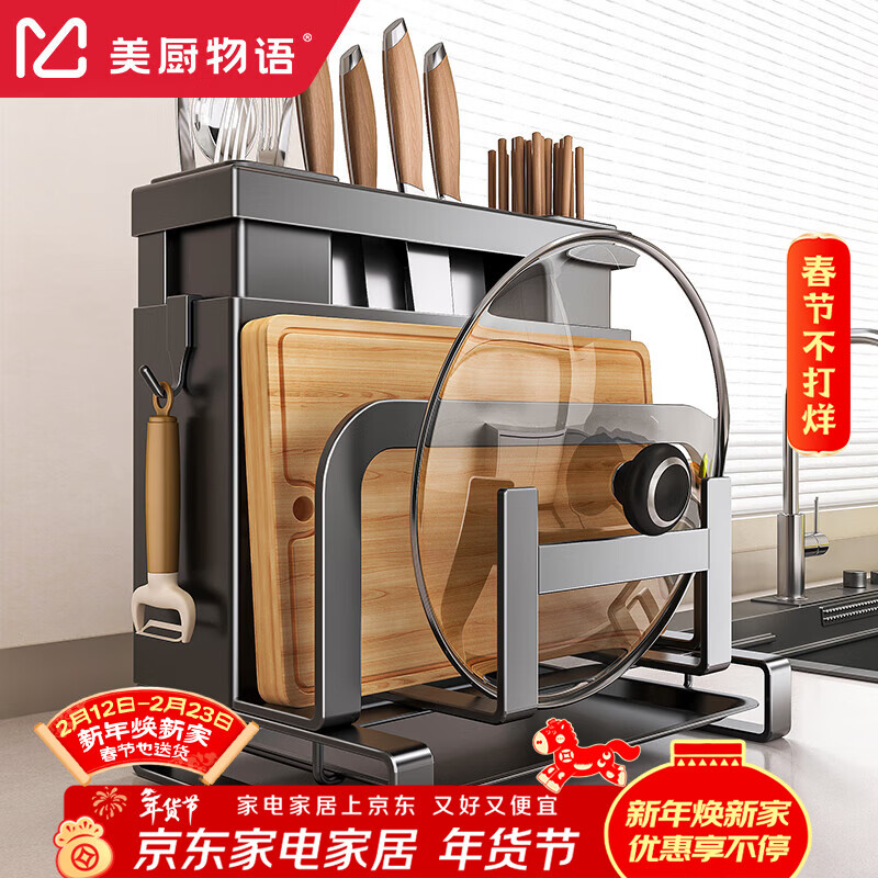 美厨物语厨房置物架刀架放菜刀板锅盖一体砧板筷子笼刀具用具收纳架