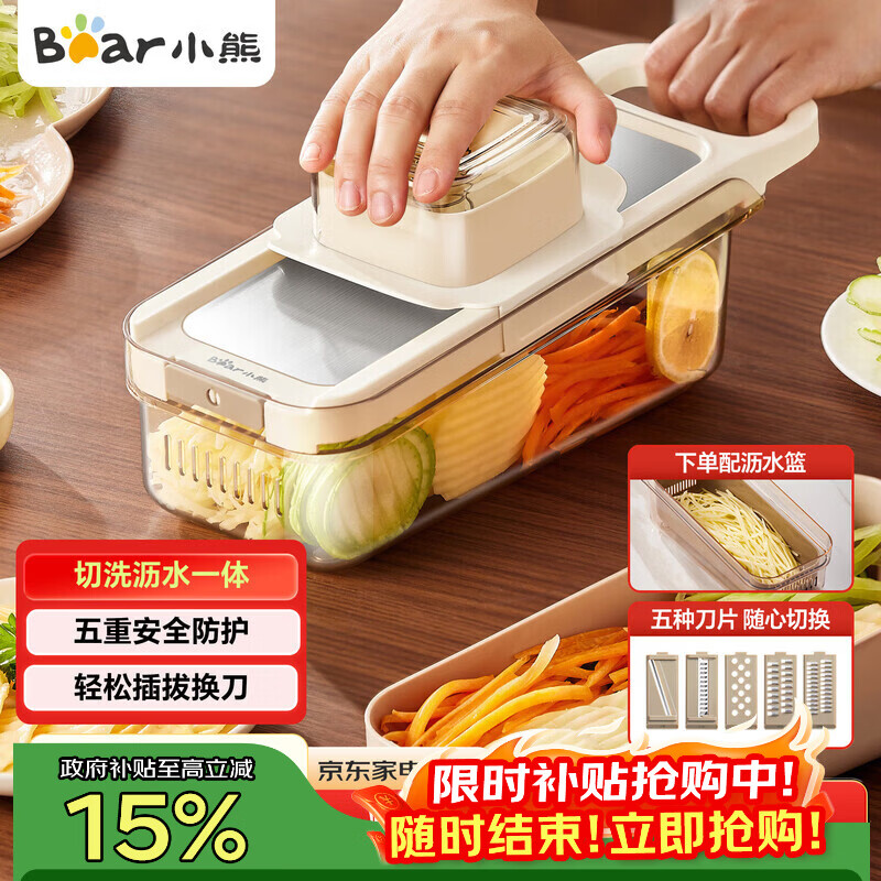 小熊(Bear)多功能切菜神器擦丝器家用刨丝器土豆丝萝卜切片器不锈钢款5刀
