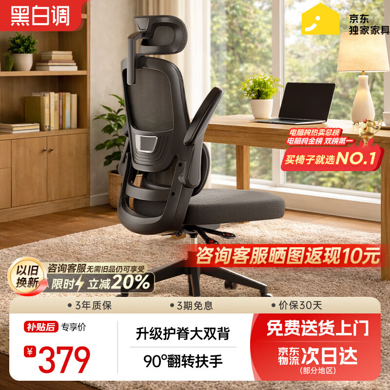 黑白调P1二代 人体工学椅电脑电竞椅子人工力学座椅办公椅 双背联动扶手