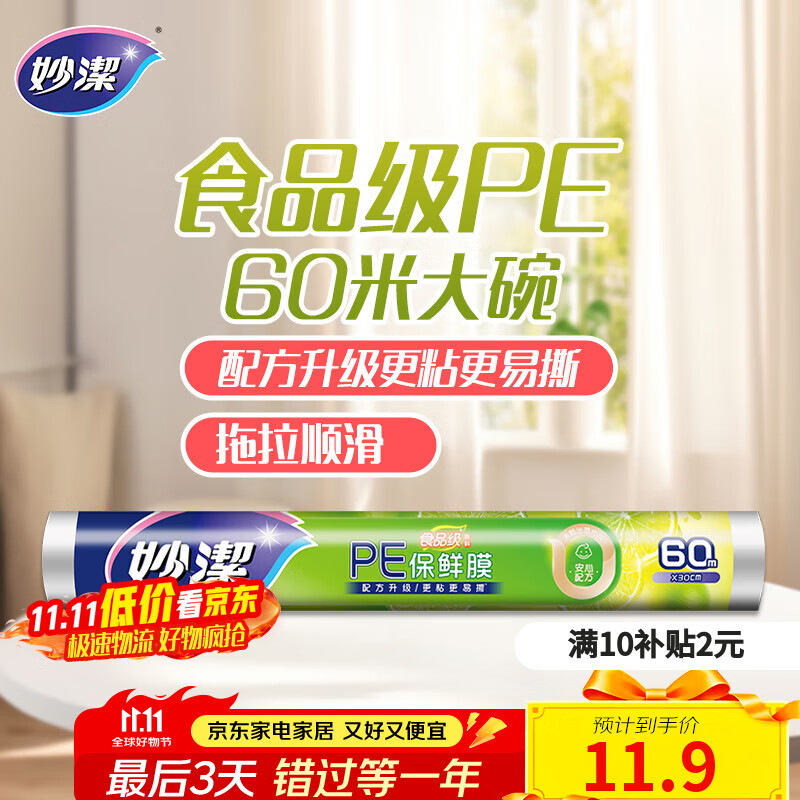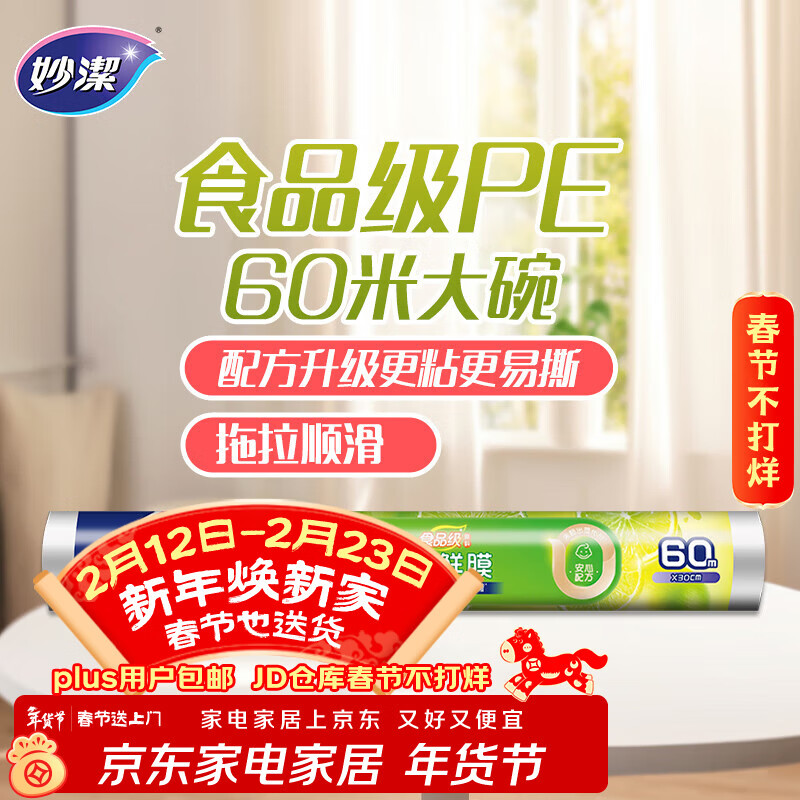 妙洁 一次性保鲜膜 粘性升级卫生易撕 大号经济装60米*30cm 非点断式