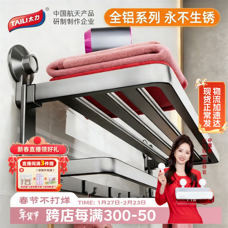 太力免打孔毛巾架吸盘卫生间置物架浴室置物架壁挂折叠毛巾挂架浴巾架