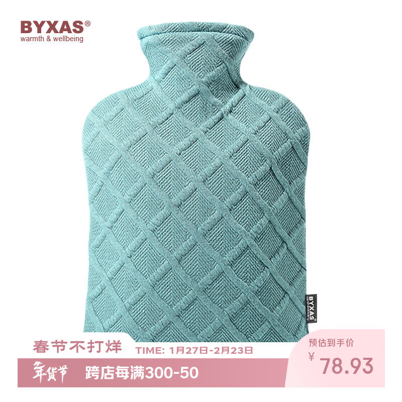 BYXAS/百赛施德国TUV认证灌水暖水袋注水热水袋暖手宝 大号1.8L雾霾蓝
