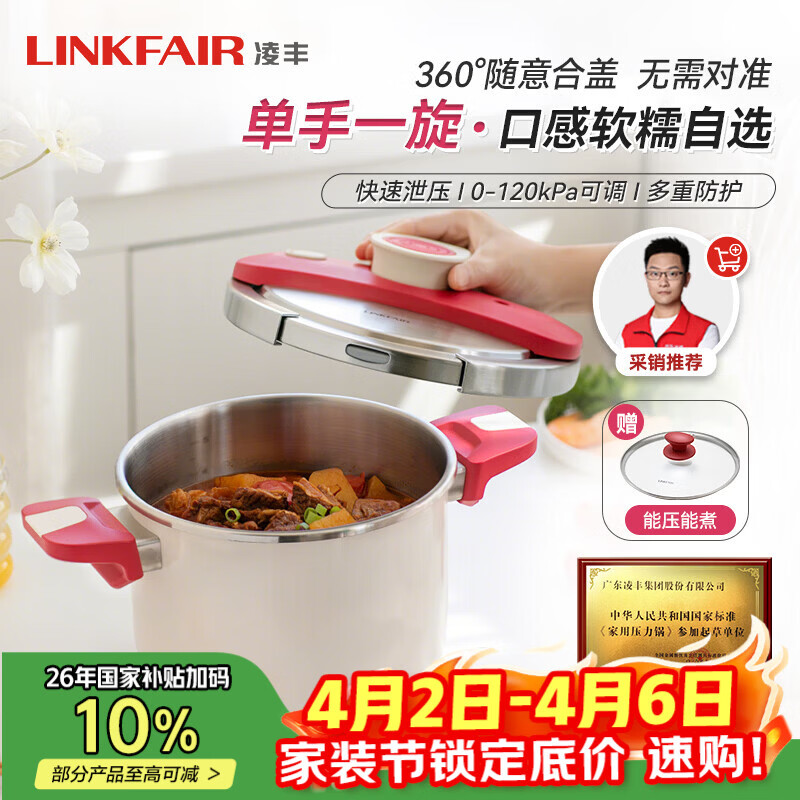 凌丰(LINKFAIR)高压锅家用不锈钢防爆一键开合压力锅燃气电磁炉通用【京东限定】