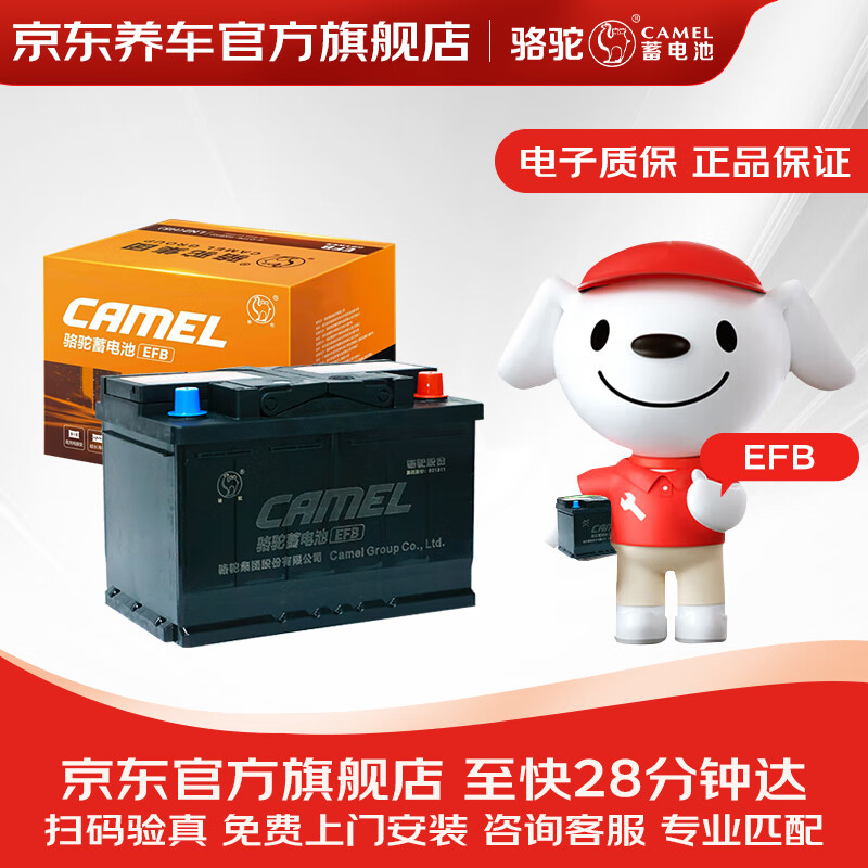 骆驼汽车电瓶蓄电池启停系列EFB60本田思域XRV缤智大众奥迪A3上门安装
