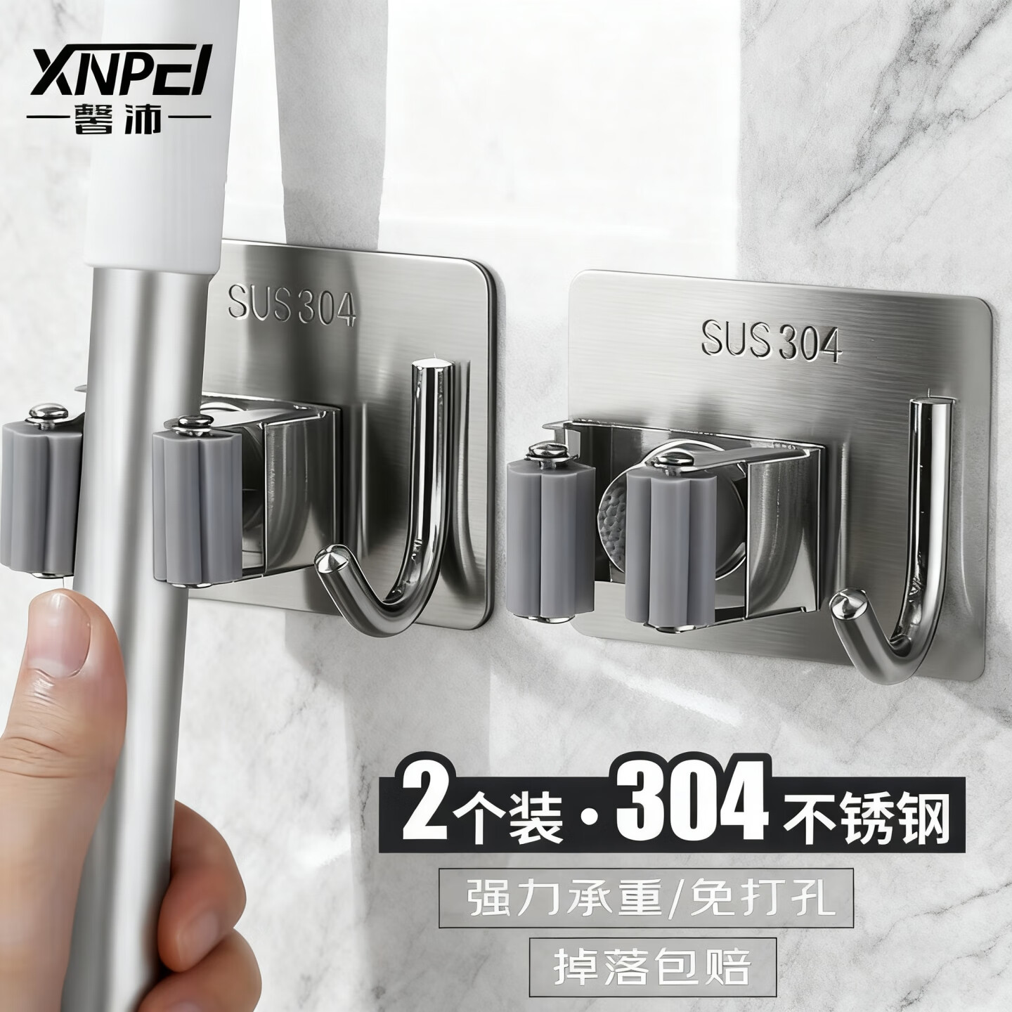 馨沛拖把挂钩拖布挂架免打孔扫把挂钩卫生间固定架拖把夹浴室置物架