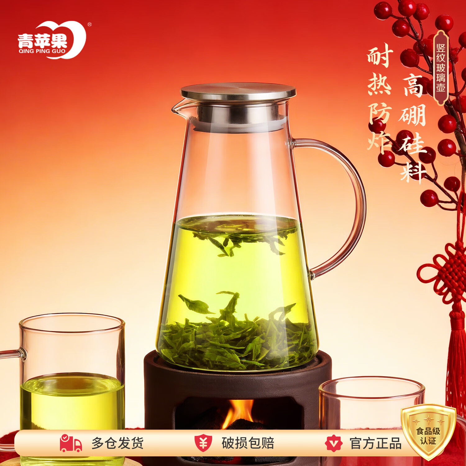 青苹果耐热玻璃凉水壶1.95升大容量 可加热烧水壶 泡茶煮凉茶壶冷水壶