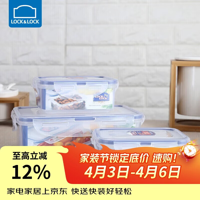 乐扣乐扣(LOCK&LOCK)塑料密封保鲜盒套装厨房冷冻保鲜储物收纳盒3件套