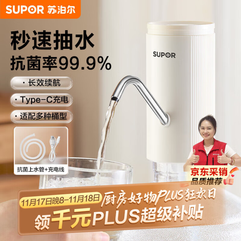 苏泊尔(SUPOR)上水器桶装水自动抽水器抗菌吸水器电动矿泉水压水器饮水机抽水泵