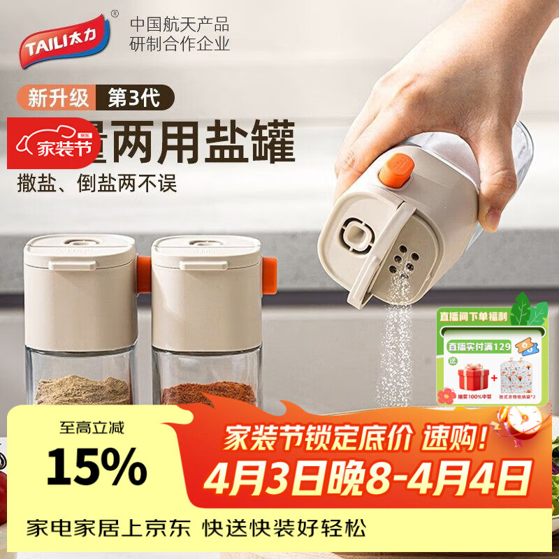 太力控盐罐盐瓶调味罐定量调料容器食盐糖厨房调料盒玻璃可计量两用