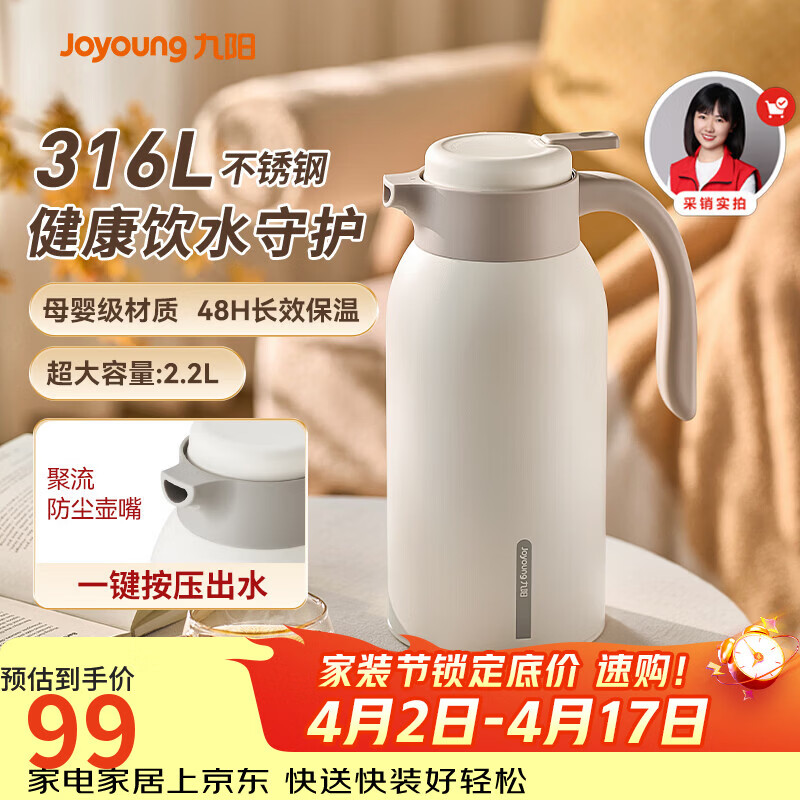 九阳(Joyoung)保温壶大容量水壶316L不锈钢真空保温瓶家用户外热水壶2.2L
