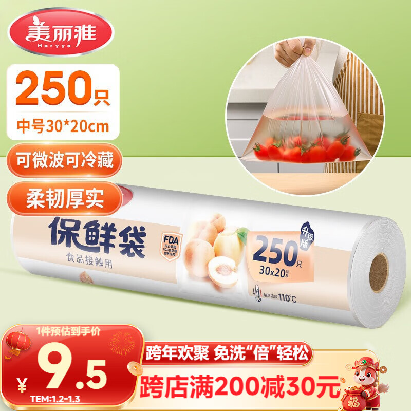 美丽雅保鲜袋食品级中号250只厨房冰箱食品保鲜袋冰箱专用