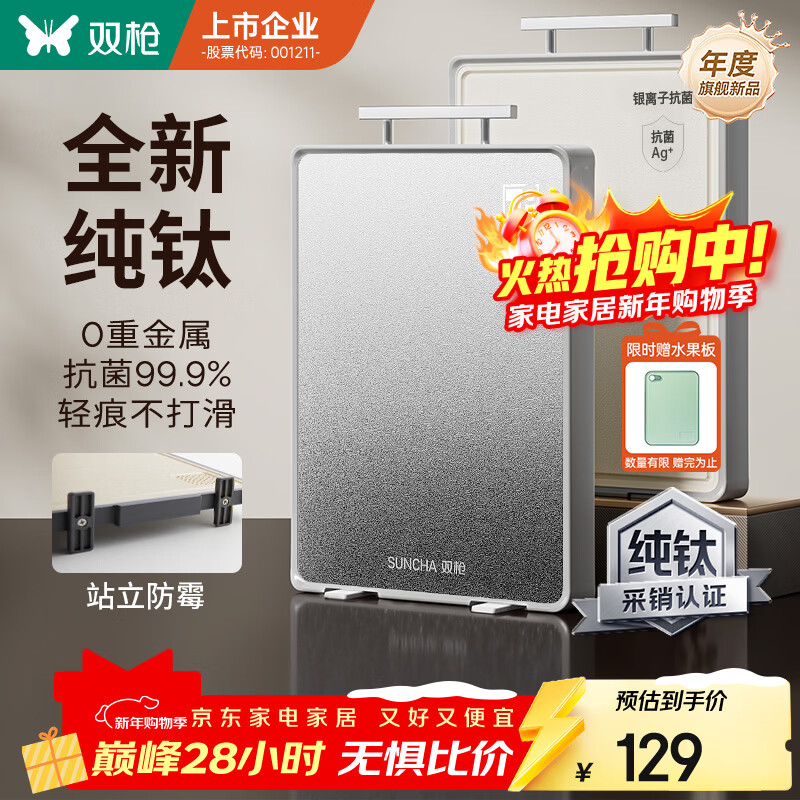 双枪(Suncha)菜板 纯钛材质砧案板双面食品级抗菌防霉家用切菜板41*27.5*1.8cm