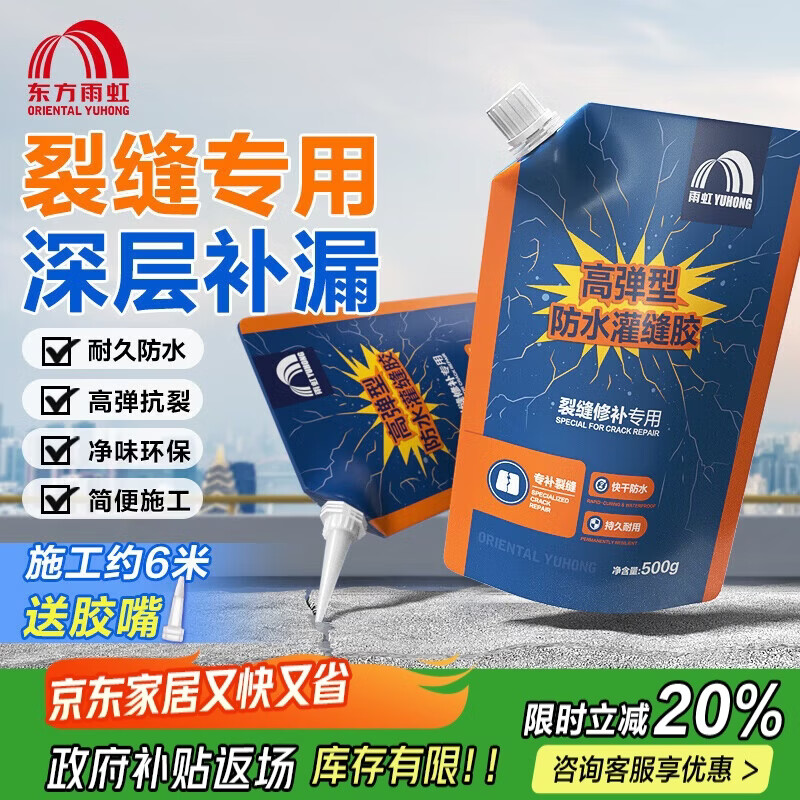 雨虹防水高弹型防水灌缝胶屋顶地面裂缝修复抗裂墙体缝隙500g 约施工6米