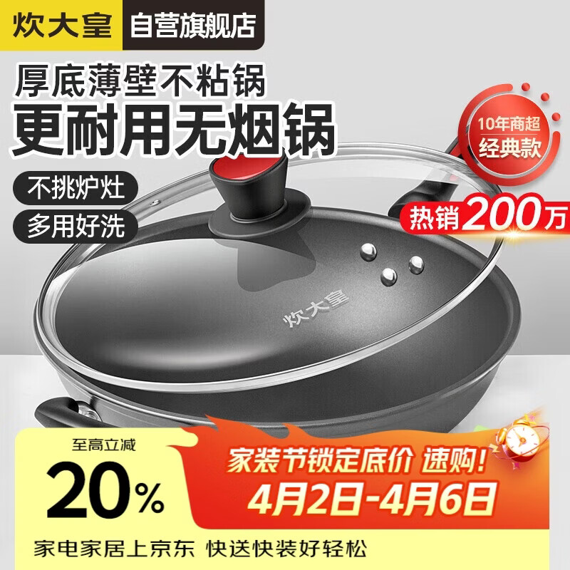 炊大皇炒锅不粘锅少油烟平底锅多用煎炒锅电磁炉通用健康 34cm