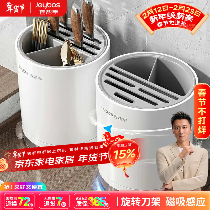 佳帮手新款厨房磁吸感应旋转刀架加厚置物架家用菜刀沥水筷笼筷子收纳架