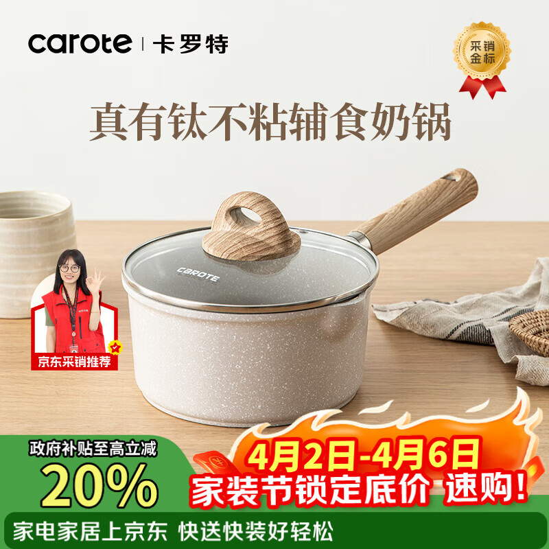 卡罗特麦饭石小奶锅宝宝辅食锅婴儿煎煮一体锅不粘钛锅家用汤泡面锅18cm
