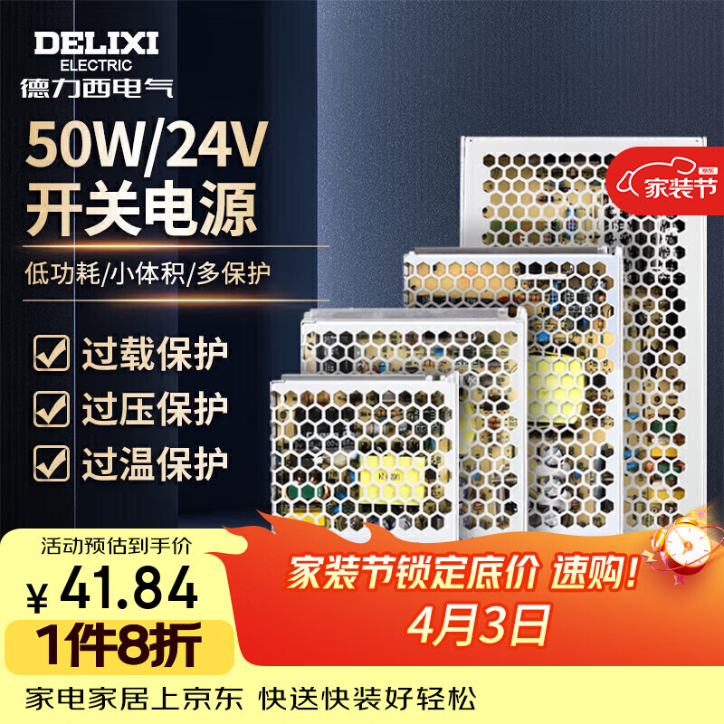 德力西电气开关电源监控电源变压器交流转直流CDKU-S50W 220V转24V