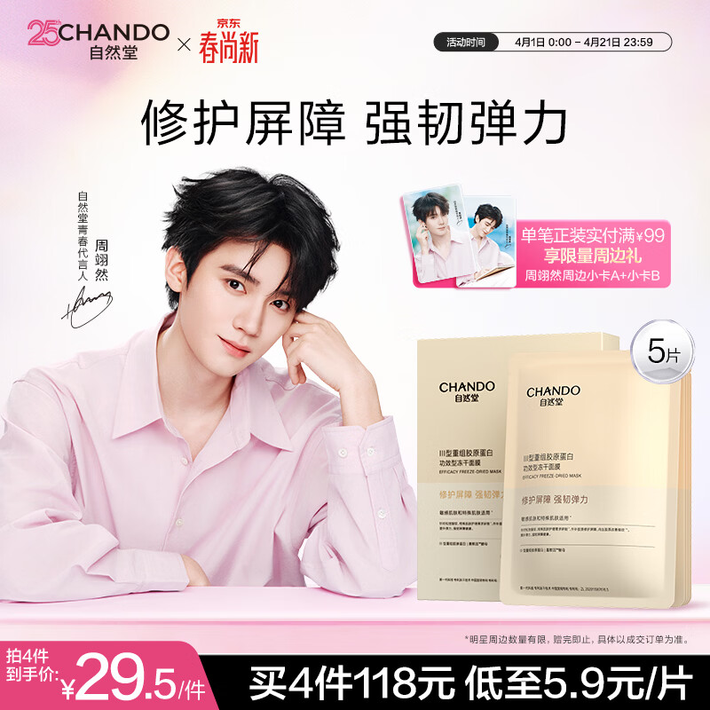 自然堂【周翊然同款】冻干胶原面膜0.65g×5片修护抗皱紧致敏肌生日