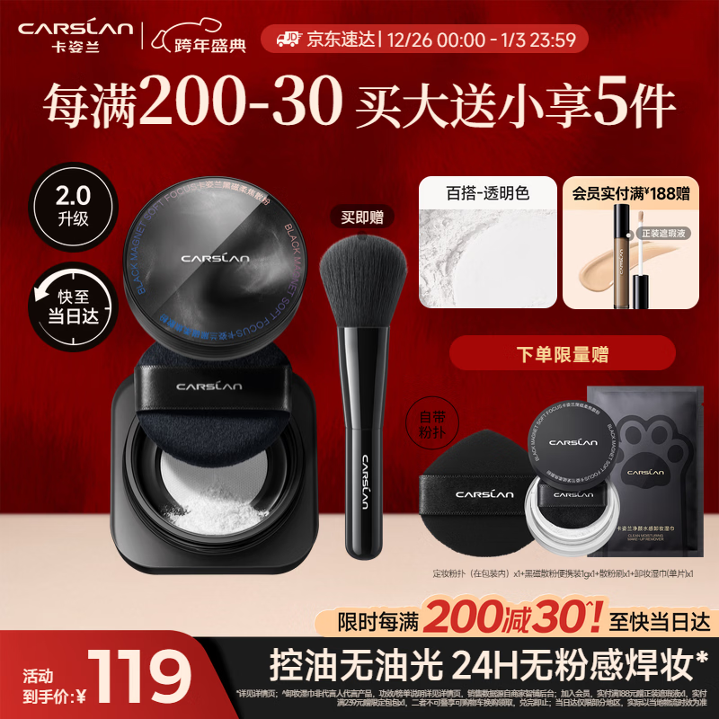 卡姿兰(Carslan)黑磁散粉定妆蜜粉饼(2.0透明色)8g控油遮瑕持久防汗不脱 新年礼物