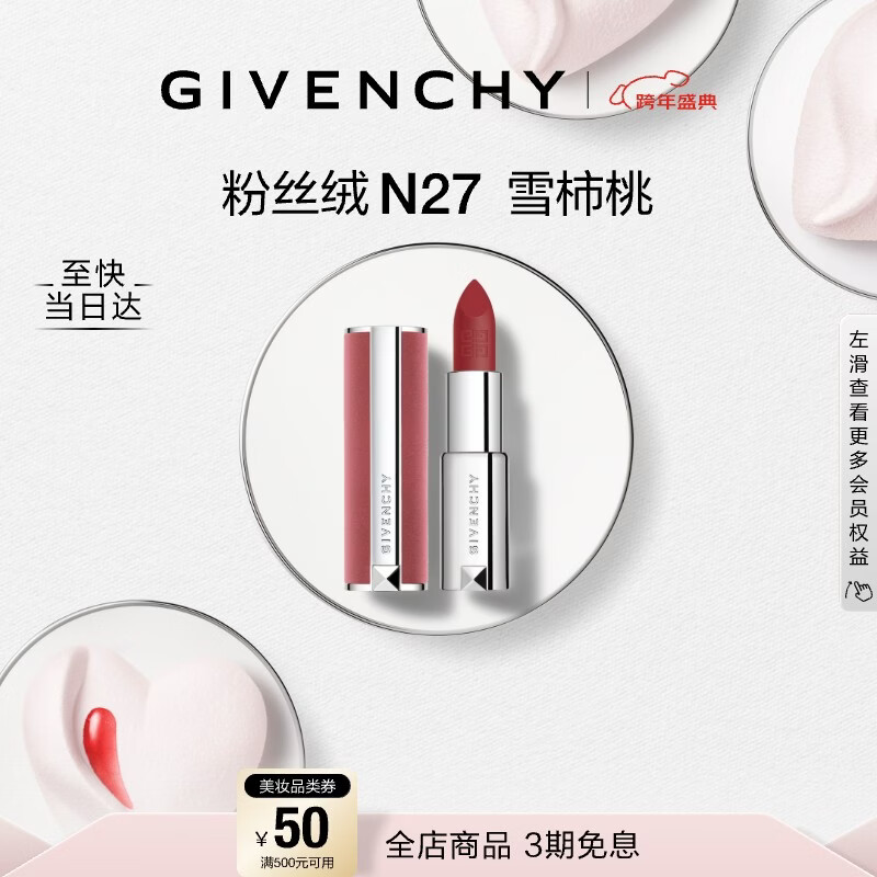 纪梵希(Givenchy)【代言人同款】粉丝绒N27雪柿桃豆沙口红唇膏 新年礼物礼盒送女友