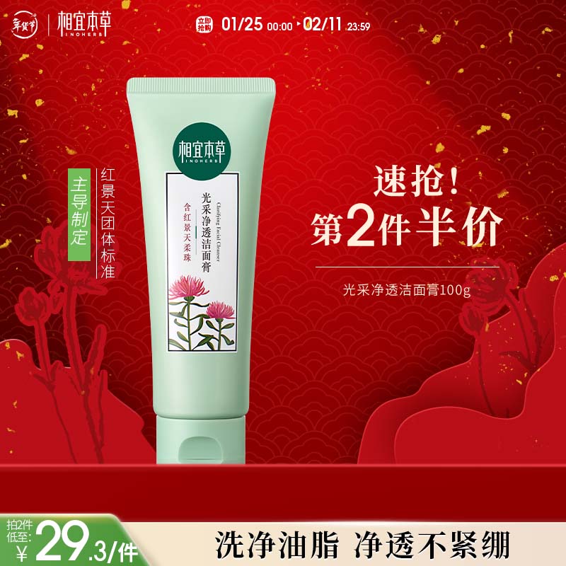 相宜本草红景天光采净透洁面膏100g 洗面奶净油亮肤新年礼物