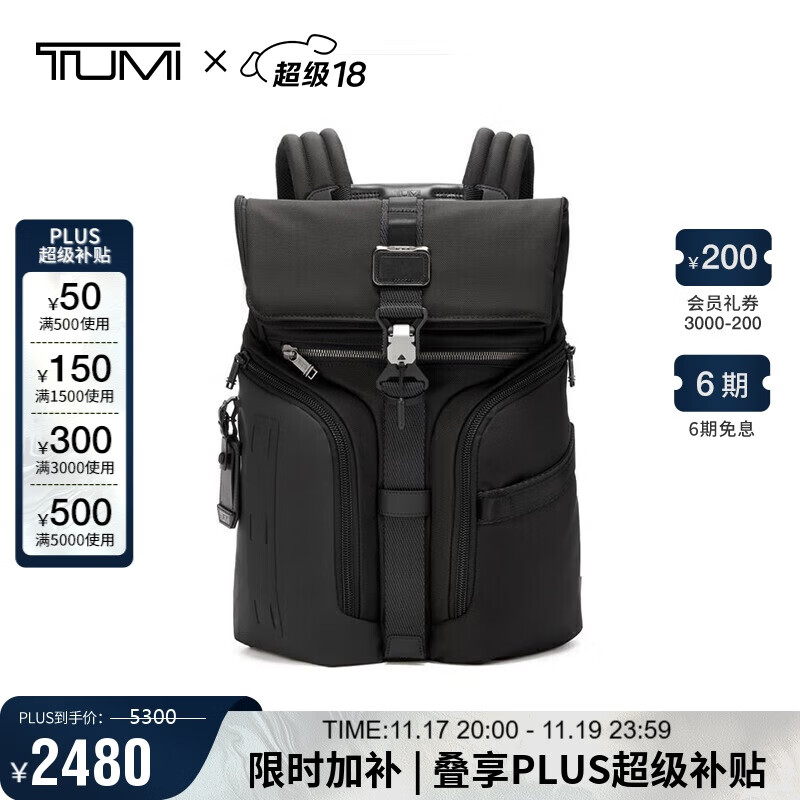 途明(TUMI)ALPHA BRAVO男士双肩包日常通勤商务旅行高端双肩包 黑色