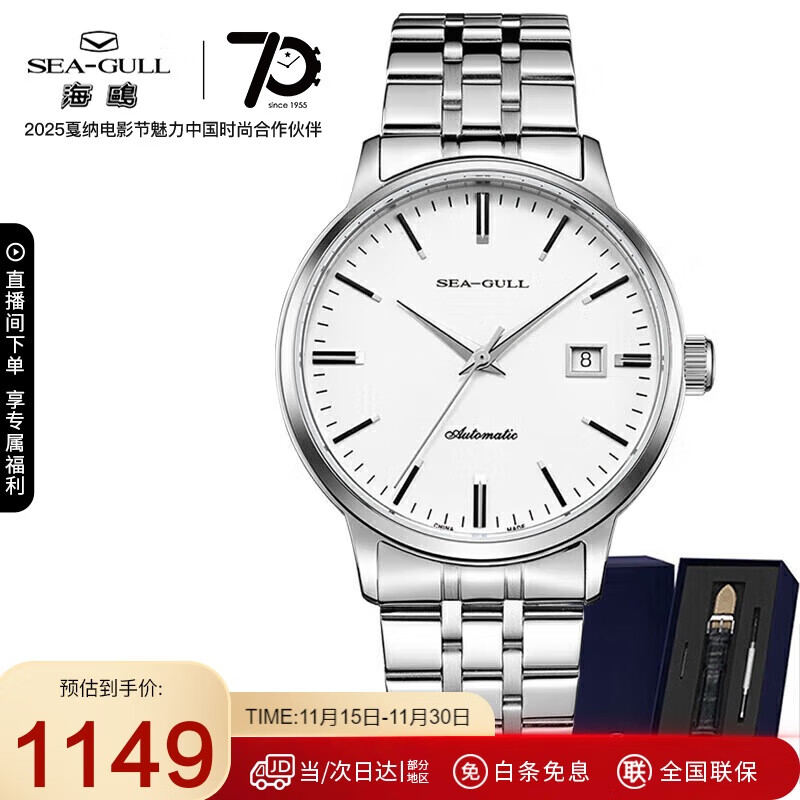 海鸥(SEAGULL)手表男士自动机械表 小钢炮日历男士手表生日礼物男表套装816.362