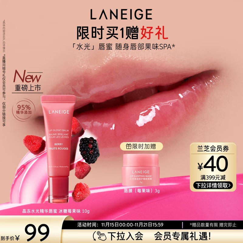 兰芝晶冻水光精华唇蜜 冰糖莓果味 10g 润唇保湿清透玻璃唇生日礼物