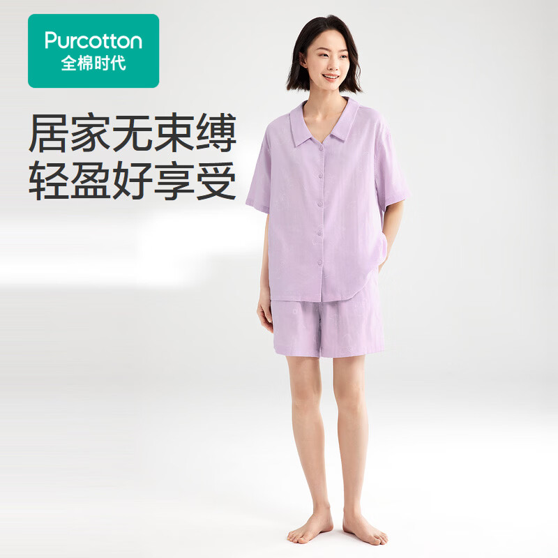 全棉时代(PurCotton)女士双层纱布家居套装 紫底白鸽 XL