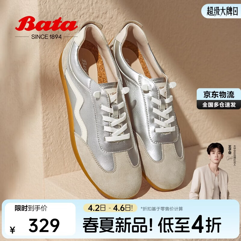 拔佳Bata休闲鞋女春秋商场同款通勤羊皮德训运动鞋木作开车鞋
