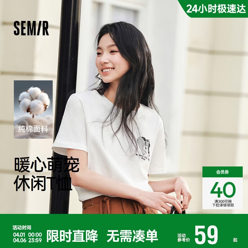 森马(Semir)[商场同款]短袖T恤女小狗刺绣夏季2025宽松衣服休闲101325100092