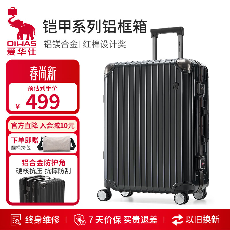 爱华仕铠甲行李箱20英寸男拉杆箱可登机旅行箱铝框箱女硬壳密码箱炭灰色