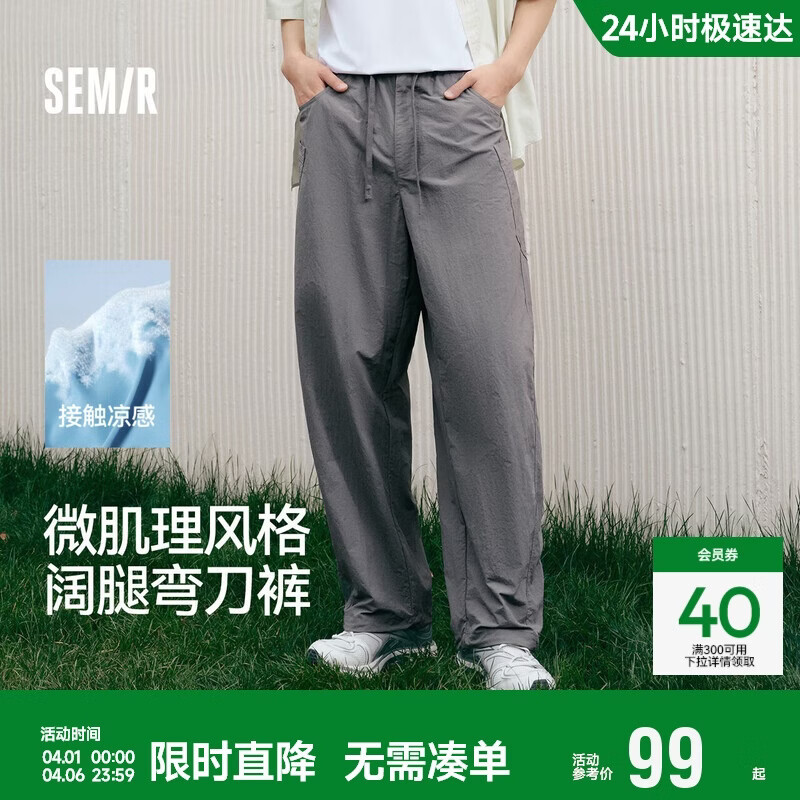 森马(Semir)休闲裤男宽松阔腿弯刀裤凉感2025夏季直筒裤简工装109325127103