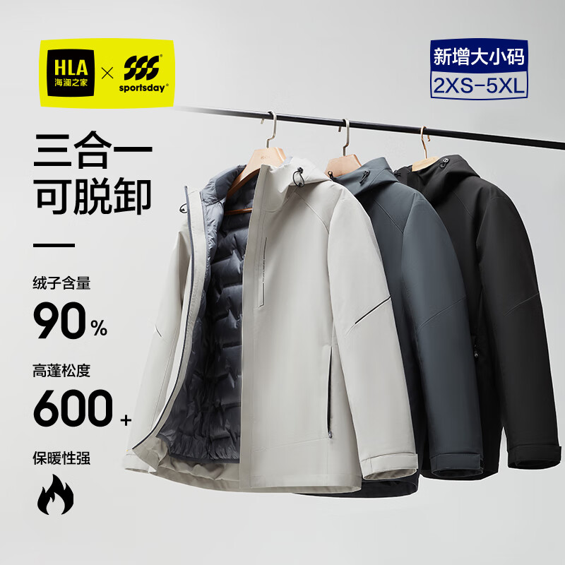 HLA海澜之家羽绒服男25城市运动鸭绒三合一可脱卸外套男冬
