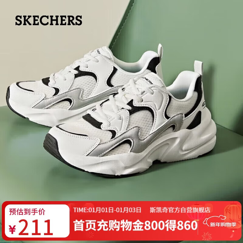 斯凯奇(Skechers)新年礼物踏浪老爹鞋复古厚底潮流闪电鞋女冬季休闲运动女鞋117364