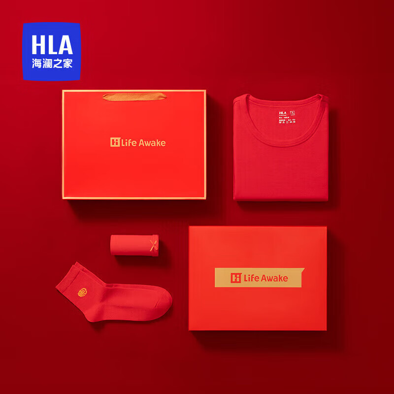 海澜之家【鸿运礼盒】秋衣秋裤女本命年马年纯棉210g骐骥红内衣内裤袜子