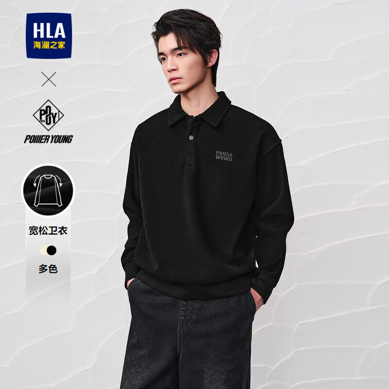 HLA海澜之家加绒卫衣男冬季panda wowo熊猫加绒长袖男