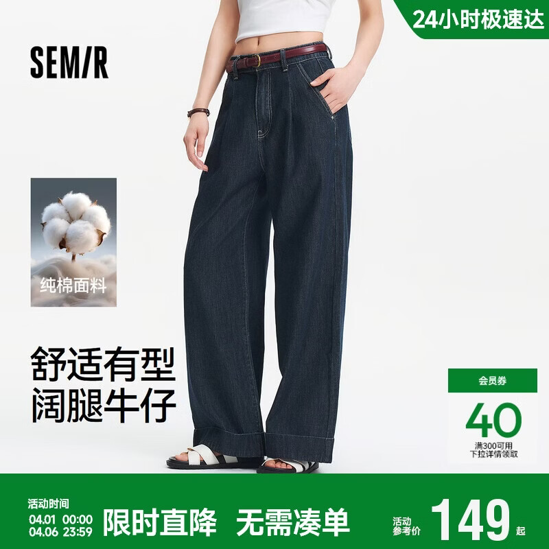 森马(Semir)牛仔裤女夏半松紧腰纯棉宽松阔腿裤腰带显瘦高街长裤103325124014