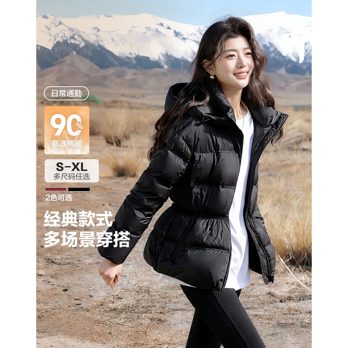 德玛纳【30D气疑胶】冬季火山岩红外蓄热抑菌连帽松紧收腰女式羽绒服