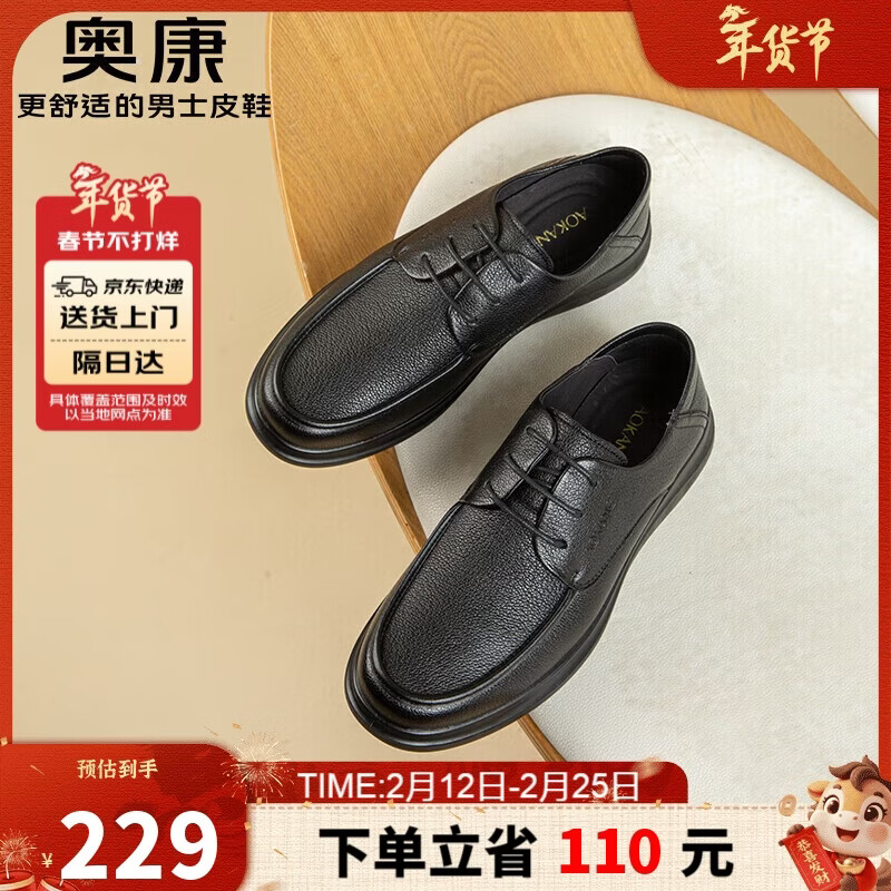 奥康(Aokang)商务休闲皮鞋羊皮软底舒适系带工作鞋 黑40码