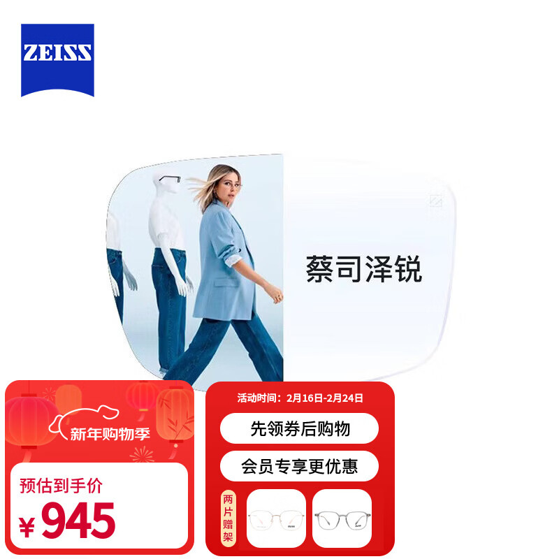蔡司(ZEISS)泽锐眼镜片现片1.74自由环面防蓝光PLUS+钻立方铂金配镜1片/-1200