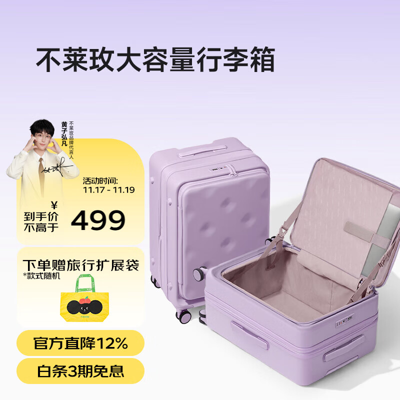 不莱玫行李箱女大容量侧开盖商务拉杆箱男密码旅行箱登机箱紫色20英寸