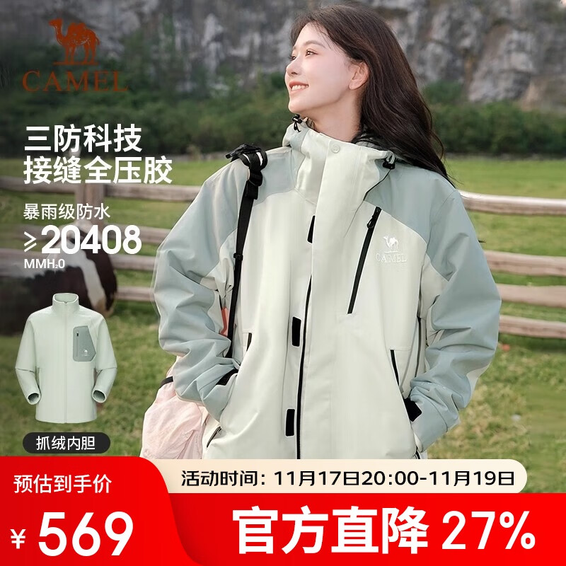 骆驼(CAMEL)[王者凯甲]户外三合一冲锋衣男女防风外套新款登山服