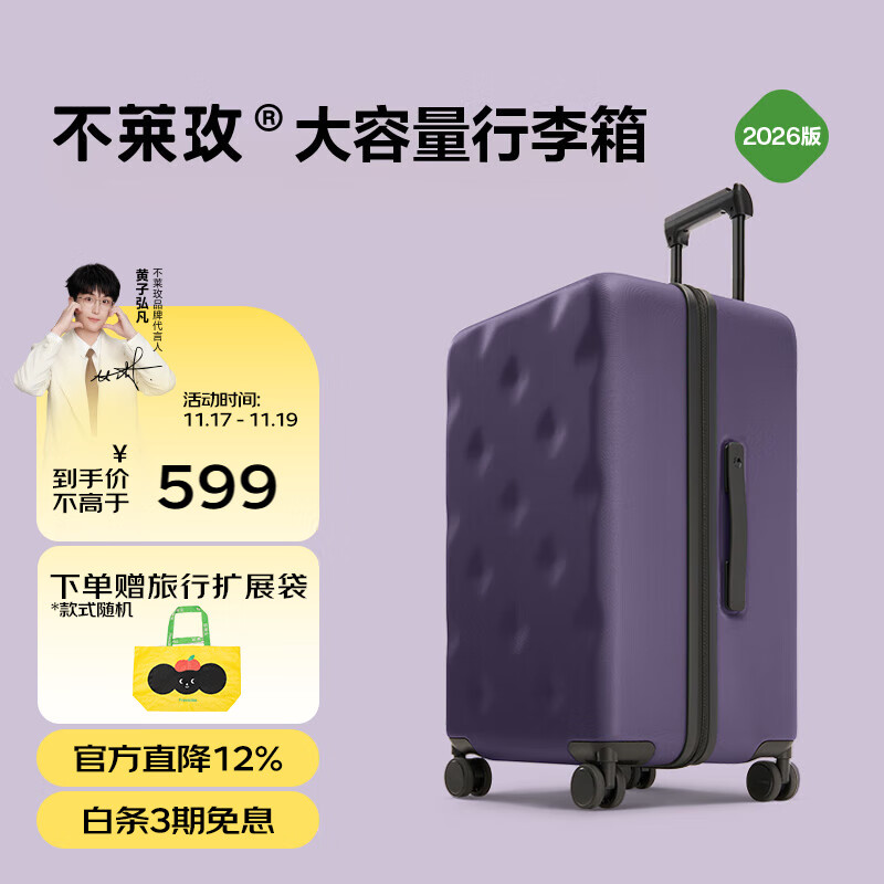 不莱玫行李箱拉杆箱男旅行箱大容量学生密码箱26英寸 乌梅紫色