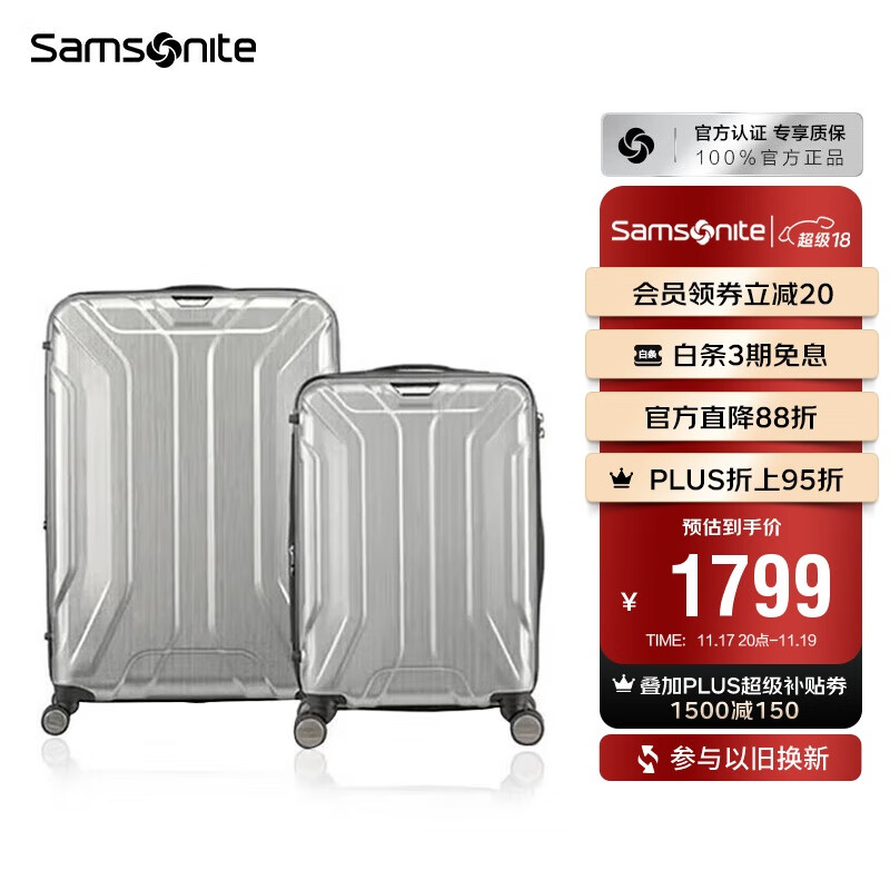 新秀丽(Samsonite)行李箱20+28英寸拉杆箱双尺寸套装箱旅行箱包TS7银色密码箱