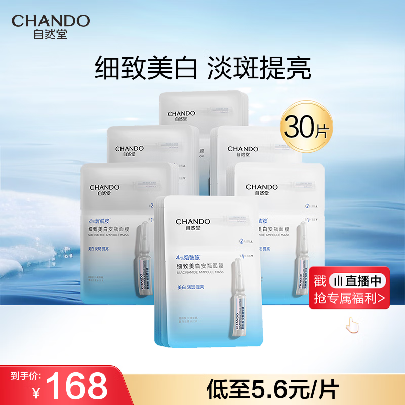 自然堂烟酰胺细致美白安瓶面膜30片淡斑提亮改善红敏肌护肤